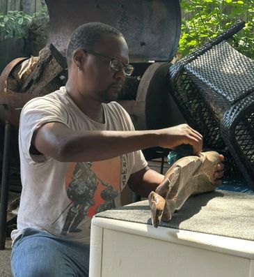 Sasha Mukusha embodies the intersection of Dr. Rujuwa’s dual expertise in art and human psychology. Through countless hours in the studio, Sasha has learned to read not only the grain and character of stone, but the deeper principles of transformation that inform both sculpture and leadership. His developing artistry reflects Dr. Rujuwa’s